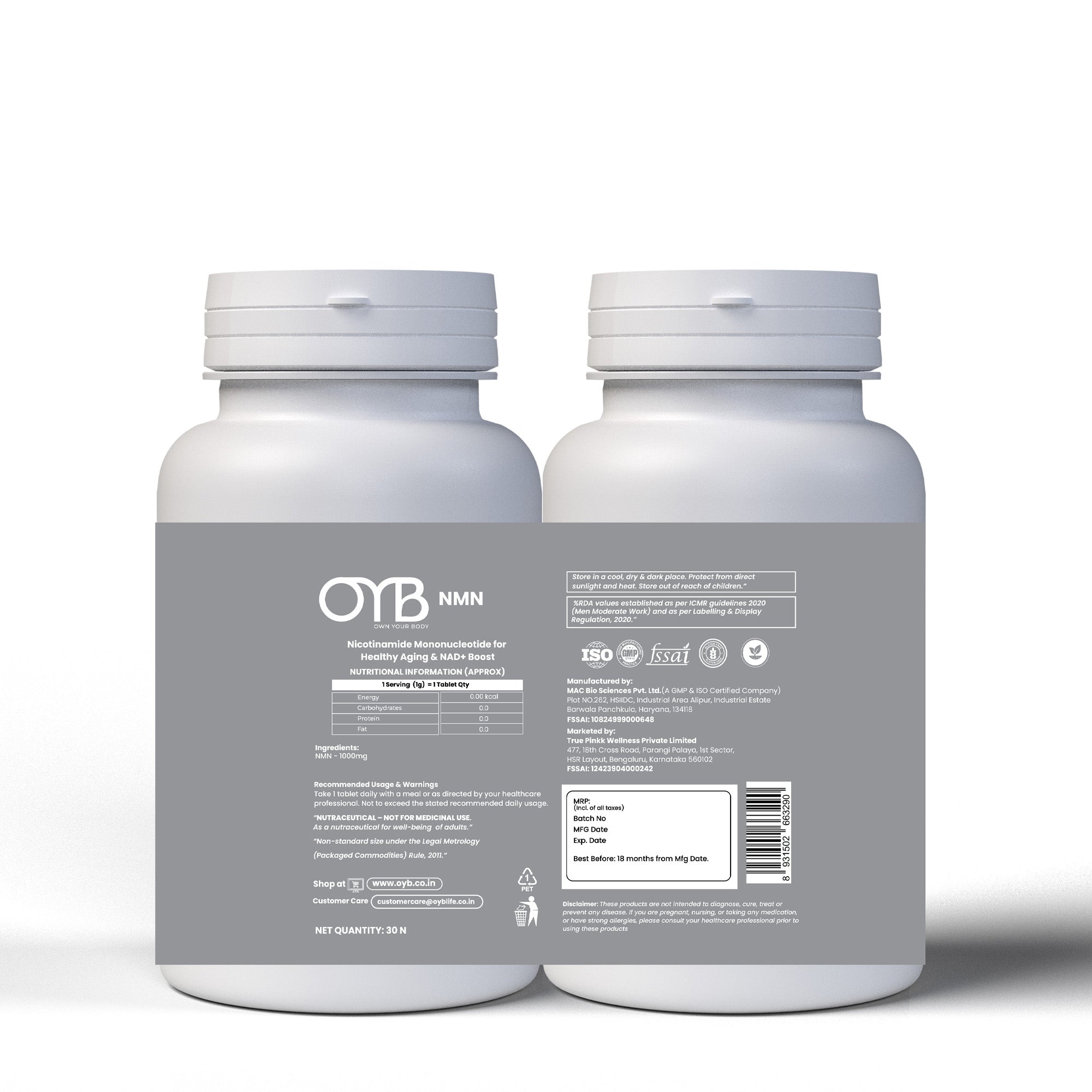 OYB NMN Anti-Aging Tablets with Nicotinamide Mononucleotide for NAD+ Boost | 30 Tablets | OYB NMN